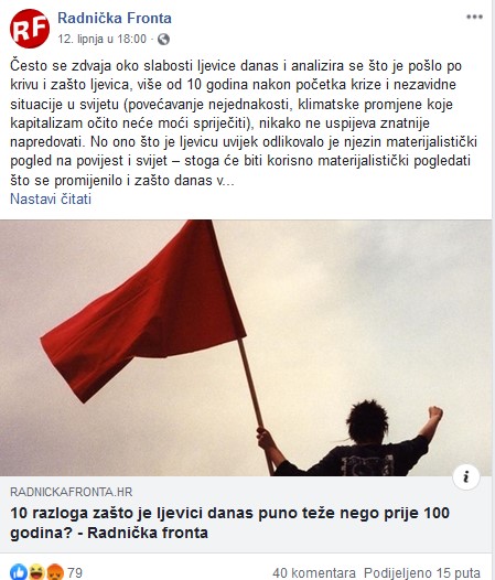 - Na svojim stranicama su u međuvremenu objavili apologetski tekst i očekivano su nam, umjesto da naprave analizu izbornog debakla i objasne tko je za taj rezultat odgovoran, objasnili zašto je općenito ljevici danas teže nego prije 100 godina, što onda znači i da (rukovodstvo koje ne postoji) objektivno nije/nisu odgovorni za fijasko.